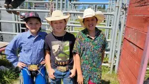 Photo of young Tsuut’ina Cowboys; Hazer (right), Stran (middle), Jayshaun (left)