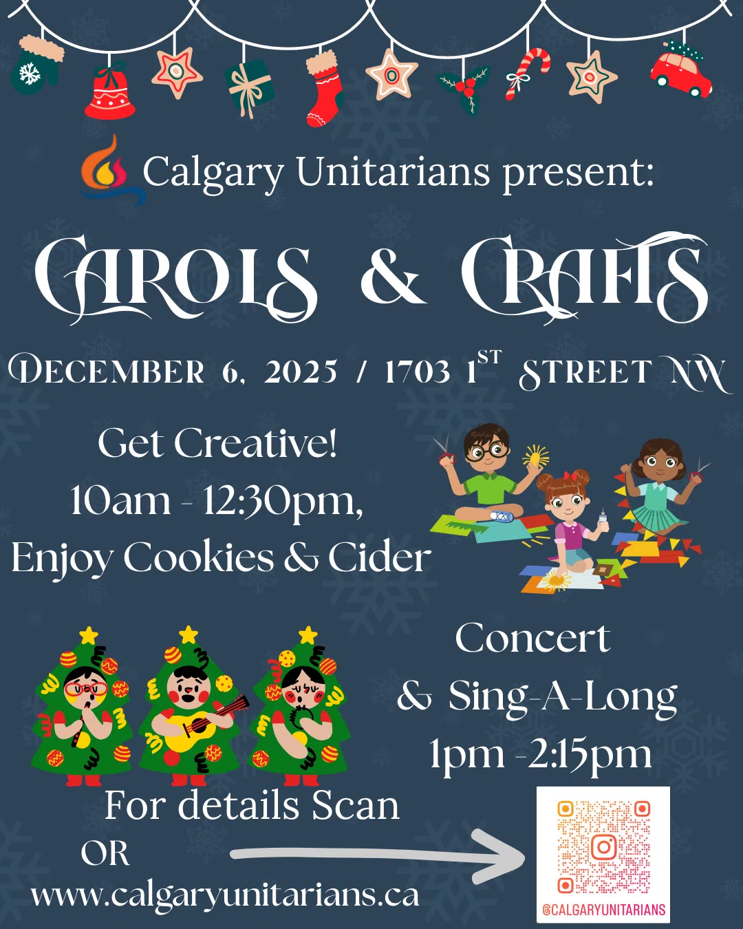 Carols & Crafts // Dec. 6th from 10am to 2:15pm // Calgary Unitarians at 1703 1st street NW // All Ages